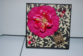 I had no idea what an easel card was until I happened upon the challenge at Celebrate the Occasion. The challenge this week is to create a birthday theme card that must be an easel. Well, after viewing a how-to video on YouTube, this is my first creation using only a small tag from the lacy label cart. The paper is from DCWV and flowers from Michael's. I am now excited to make many more easel cards.